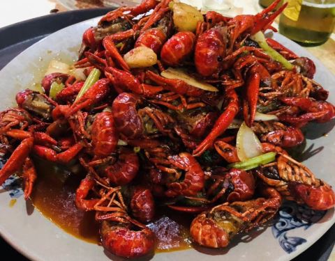 - 每次来都是吃一些小吃,陈皮红豆沙啊,酸辣粉锅盔,冒菜之类的,这回要的硬的,小龙虾,竟然味道也不错