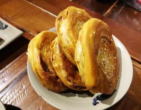 位于乐泰中心•庄里街4层的“峨眉小镇•天府小吃荟”,是我和家人的最爱。 [锅魁]我的最爱