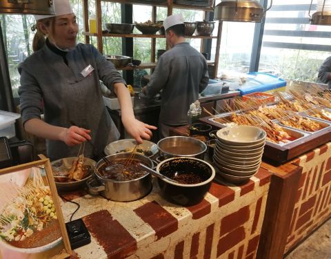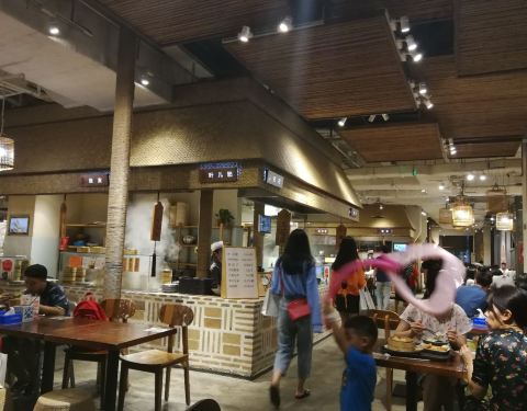 我和家人周日上午来勒泰中心五楼“UME国际影城”观影《阿丽塔》,午饭,我们来“峨眉小镇·天府小吃荟”打卡。 人多呀,找张空桌,需要好运气。 “小吃荟”供应的各式各样四川小吃,都是由来自四川的师傅开店制作,味道纯正。食客们畅游在“小吃荟”食街中,各选所爱,丰俭由己。 [串串]最靠里面的铺面,素串1.5元,肉串3元,价高、菜量也大,老板娘操着一口纯正四川口音,很热情的招呼着客人,老板娘见我选的串串多,也或许我面生,主动给我添加腊肠串串,说免费让我品尝品尝,搞得我受宠若惊。老板娘热情积极的态度,必须五星点赞。串串的味道香辣可口,欲罢不能,疑似我在乐山吃的串串,品质很棒。 [牛肉锅魁]必点项。我喜欢这种传统锅魁,厚实,给人一种踏踏实实的感觉。咬一口,满嘴的香酥,越嚼越香,慢慢的吞咽之后,唇齿留香。 【评价】勒泰商圈,“峨眉小镇·天府小吃荟”,中式快餐的首选。我和家人,每次来他家都与电影相连,过去是这样,未来还会是这样的。