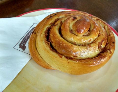 之前就在这买过,感觉很正点。今天在世纪剧院看完演出,有点小饿,刚好来逛逛。点了八字盐碱包和肉桂苹果卷。盐碱包很有嚼劲,能感觉到面的韧性。肉桂苹果卷肉桂味很足,不过没看到太多苹果颗粒,喜欢苹果的可能...