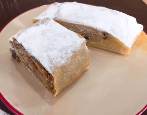 - 肉桂苹果卷肉桂味很足,不过没看到太多苹果颗粒,喜欢苹果的可能吃苹果卷更好。之前就在这买过,感觉很正点