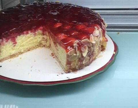 买了蓝莓酸奶蛋糕,酸奶比较厚,杏仁奶油,味道浓郁。