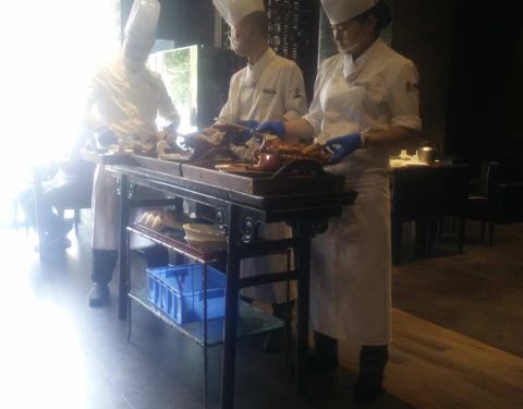 太差劲了,满屋子的服务员在那打闹,两个服务员公众在那搂抱到一起,或者就是抱着手机在那玩,喊服务员喊半天没人来,片出来的鸭肉下面还有黄颜色的油,反正这是吃过最差的一次烤鸭了,以后绝对不会再来了!
