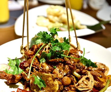 与浦东陆家嘴隔江相望的上海威斯汀大饭店,那皇冠般的酒店屋顶让人记忆深刻,酒店内部挑高的大堂中庭更是气宇轩昂,连接4个楼层的玻璃天梯更为匠心独具恍如梦幻,而水晶苑中餐厅就是在这个玻璃天梯到达的最上方。...与浦东陆家嘴隔江相望的上海威斯汀大饭店,那皇冠般的酒店屋顶让人记忆深刻,酒店内部挑高的大堂中庭更是气宇轩昂,连接4个楼层的玻璃天梯更为匠心独具恍如梦幻,而水晶苑中餐厅就是在这个玻璃天梯到达的最上方。 餐厅的环境布置开阔宽敞,屋顶全是透明玻璃而成,能感觉到餐厅名字的来由,水晶般通透的餐厅和玻璃天梯的承接是有呼应融合之感!餐厅既然是中餐为主,中餐的各菜系还是都有体现,当然主要还是偏江浙本帮菜系一点,毕竟是在上海的餐厅,江浙本帮菜肴更能有特色! 我们点的冷菜完全体现出江浙特本帮特色,香糟三拼、小坛醉鸡,在这个炎热的夏天最适合了,每样口感清爽滋味无穷!上海油爆虾的香甜脆鲜、老上海熏鱼的冷菜热做口感一流,完全本帮特色很完美的演绎,! 松茸菜胆炖竹丝鸡,这碗老火炖汤就很好的粤菜展现,清甜的汤水口感很舒服,里面的食材也清新美味! 一道道热菜上来也是非常赞的,宫保鸡丁可以说是这里的招牌菜了,但我觉得这里做的更偏向本帮的鲜甜滋味多一点;芝麻金香奶油虾,大大的明虾球包裹着蛋黄酱口感脆脆的我很喜欢;黑蒜香芋炜澳洲牛肉,这道菜肴我最最喜欢了,牛肉鲜嫩有滋味,连里面搭配的芋头也吸收了滋味非常好吃!还有香美盆盆蛙、笋壳鱼、榆耳百合炒芦笋等火候和滋味都控制的蛮好的!