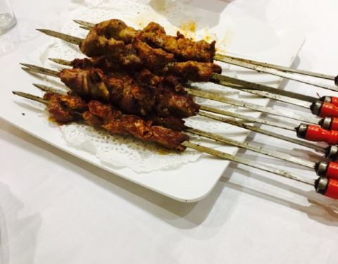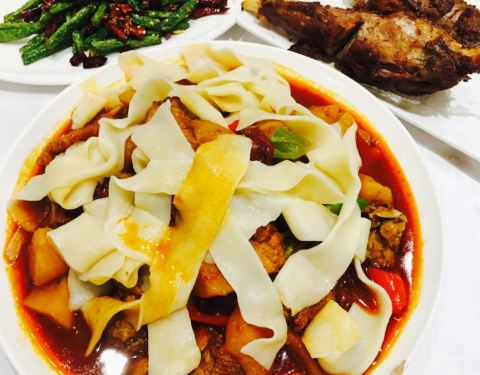 阿布都。我们一家人来到一家阿布都新疆美食,还没进门就有一条长长的红色地毯,门口有两个迎宾员,看起来好高大上啊,进来之后豪华的装饰深深地吸引了我,弹乐器的大叔和蔼可亲。第一次吃新疆菜,我问过他们阿布都是什么意思,她们说是男子汉的意思,也是老板娘的名字,最喜欢吃的是那个什么羊排,听服务生说是经过四到程序做出来的,非常入味,还有新疆的拌面,??????好想跟厨房新疆大师傅见上一面,能做出那么鲜美的菜,服务方面也挺好,服务生会询问你烤肉需不需要加热,喊一声他们,他们也把手举的高高的回应我们,好欣慰啊,整体来说满分,下次带朋友来吃。