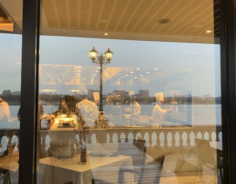 今年生日在这儿过,虽然小贵,不过我感觉还是值得的。首先环境,人少,坐落在江边上,用餐环境好不被打扰,透明的厨房,看见里面有4位厨师在为你烹饪当晚的下饭,第二,服务生的素质高,说话轻声细语的,会问你当晚的菜肴水平如何,第三,出品好,5成熟的牛扒无得弹,提拉米苏也很好,下次会再。