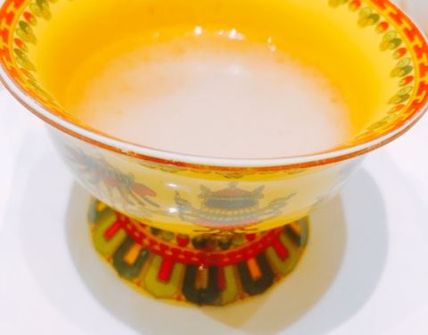 松茸清汤很不错,松茸的香气完全散发出来,清澈的汤一点都不缺少滋味。我对于芥末虾球喜好程度一般