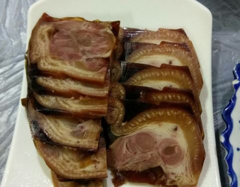 饭店开在古镇上,名字颇有特点,当地话和上海话还是有点接近的。本帮菜,浓油赤酱,上菜速度贼快,轰隆隆全部上桌,包括酒酿丸子和甘蔗也早早端上桌了,嘿嘿。味道还行。丁蹄少不了,切成一片片,有肉酱冻连着,...饭店开在古镇上,名字颇有特点,当地话和上海话还是有点接近的。本帮菜,浓油赤酱,上菜速度贼快,轰隆隆全部上桌,包括酒酿丸子和甘蔗也早早端上桌了,嘿嘿。味道还行。丁蹄少不了,切成一片片,有肉酱冻连着,吃到嘴里一点不油腻,不愧是本地风味。值得一提的是这里的马兰头,和我们平常吃的马兰头拌香干不太一样,不是碎末,而是一条条的树叶,很香很入味。