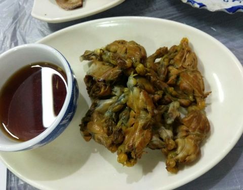 饭店开在古镇上,名字颇有特点,当地话和上海话还是有点接近的。本帮菜,浓油赤酱,上菜速度贼快,轰隆隆全部上桌,包括酒酿丸子和甘蔗也早早端上桌了,嘿嘿。味道还行。丁蹄少不了,切成一片片,有肉酱冻连着,吃到嘴里一点不油腻,不愧是本地风味。值得一提的是这里的马兰头,和我们平常吃的马兰头拌香干不太一样,不是碎末,而是一条条的树叶,很香很入味。