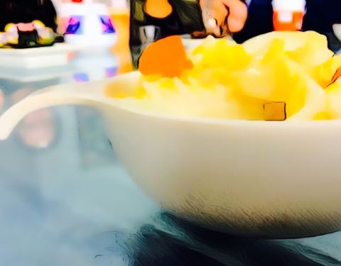 在枫泾古镇的餐饮店中是属于规模较大,价格偏高的一家。店名很特别-叫人难以忘怀,且“唔呶喔哩”四字均带口字,说明跟吃有关。他家的房子布局也奇怪,本来临河而建的店家门面都是面对着河的,可他家不同,进入里面,中间一长条石板路,镶嵌着鱼塘小石桥-里面养着观赏鱼,在路的2旁是两排包间,长路到底是厨房,卫生间。显示出此店有别于他家的气势和水平。吃过几次,最记忆犹新的一道菜叫“吴越豆腐”,是一大块红烧豆腐,中间崁入肉糜。把肉糜相隔的2层豆腐比拟成吴,越2国,反映了当地在春秋战国时期的独特的地理位置。从一道菜看历史,有意思。其次,比较喜爱的是清蒸白水鱼,用本地的鱼清蒸,很原汁原味,吃得出食材的新鲜度。服务员阿姨的工作服是蓝印花布的,跟小镇很搭。应该说此地的大厨师傅烧菜水平不错。点菜时记得选当地当季的食材和朴素的烧法,便差不到哪儿去。吃完饭,在店门口坐坐看看河道的景观也很舒服,有兴趣的话可以乘船游玩,店家门口便有扎着大红花和红灯笼的游船等候。