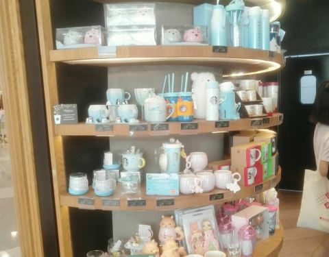 - 这家来福士广场星巴克咖啡馆的配置比较经典,店面里除了点餐台和餐桌,还有星巴克咖啡杯、咖啡豆以...