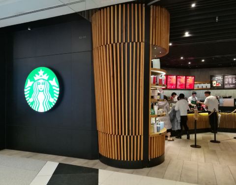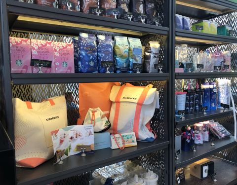 这家来福士广场星巴克咖啡馆的配置比较经典,店面里除了点餐台和餐桌,还有星巴克咖啡杯、咖啡豆以...
