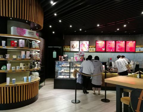 这家星巴克咖啡馆位于上海来福士广场的二层,包括一个面积较大的店面以及一个面积不大的店外用餐区。 这家来福士广场星巴克咖啡馆的配置比较经典,店面里除了点餐台和餐桌,还有星巴克咖啡杯、咖啡豆以及其他相关...这家星巴克咖啡馆位于上海来福士广场的二层,包括一个面积较大的店面以及一个面积不大的店外用餐区。 这家来福士广场星巴克咖啡馆的配置比较经典,店面里除了点餐台和餐桌,还有星巴克咖啡杯、咖啡豆以及其他相关商品的展示台。 星巴克咖啡馆的地面位置不错,距离步行电梯的距离不远,顾客络绎不绝。