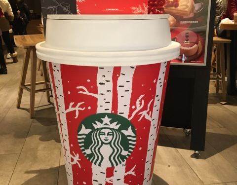 来福士2店靠近汉口路,在商场的后面,店铺比较小,但是人相对也少。 买了两杯圣诞特饮,小乐魔星冰乐和小乐魔热摩卡。买了大杯的饮料,并没有送我面具。不过买一送一券可以和支付宝优惠一起使用。 小乐魔星冰乐非常甜,奶油倒是还不错。热摩卡也是超级甜,完全没有咖啡味,就是热巧克力。