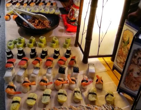 牛排煎得火候还不错,而且肉质也挺上层的。生鲜的三文鱼、金枪鱼味道都不错;寿司品种不多,口味还行