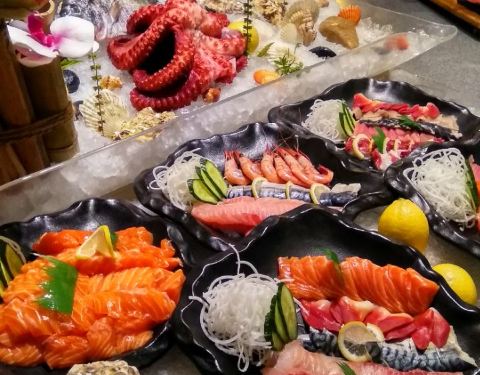 酒店里很不错的一家餐厅,一直是他家的忠实粉丝,环境也很好,现在酒店的樱花陆续开放,早点来还可以赏赏花。现在晚上团148加十元还有小火锅吃,十元加不加随意,选择很多。喜欢吃日式刺身,最爱的是炒冰淇淋,哈根达斯多种口味,想吃多少就吃多少。