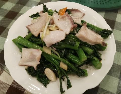 登丰海鲜酒家位于西华路,附近有多个公交车站,交通便利。 这是一家粤菜餐厅,店面不很大,装修的古色古香。 生鱼片炒菜心 镬气很足,生鱼片无骨爽口,菜心无渣。 豉油鸡 皮爽肉嫩,味道是咸中带点甜味。 卤水掌翼 掌翼焖得很淋很入味。 豉汁蒸鱼头 火候正好,非常好吃。