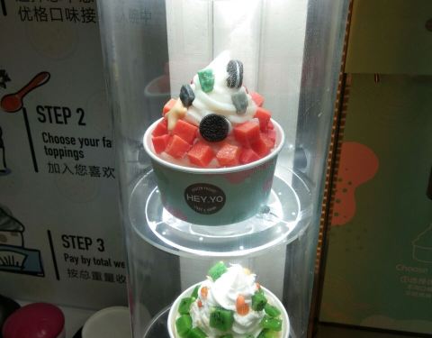 HEY_YO喜乳酪(正佳广场2楼)――暴利雪糕点心店。无非就是色彩缤纷、造型可爱点而已,如今这世道就靠包装抬高身价!实际就是忽悠!这一小杯酸奶雪糕原价居然30元!支付宝口碑特价15元,用了5元实付10元依然偏贵!口感也不是特别香滑,还不如麦当劳等好吃。做一次“老衬”即可。