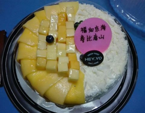去年庆祝老爸生日,在这里订了一个“榴芒双拼”蛋糕,榴莲、芒果的组合深得人心,得到大家一致好评,但最近再到店里,发现这款蛋糕缺货不做了,希望尽快恢复吧~