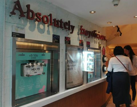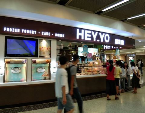 餐厅在正佳广场里,而且商场里面有2家hey yo哦。逛街逛累了,可以在这里停下来吃杯低脂雪糕,小憩一下。[环境]很小的店面,里面有几张桌子凳子,位置之间比较窄,不适合长时间聊天。餐厅人流很大,也有点看超。[口味]酸奶雪糕,听说比较低脂,而且酸酸的夏天吃了很解腻很开胃,可以搭配很多的水果和巧克力。这里的雪糕都是手工做的,比较健康,糖分低(不过还是不能多吃啊)。除了雪糕,餐厅有卖甜点和饮品。[价格]比较贵,10元的酸奶只有一个球那么大,搭配的材料尽量不要选湿的太重的,否则价格会很贵。一定要先提前了解价格,好像是50克就要8块钱,所以如果你想把辈子倒满,没有三四十元跑不掉。团购有拿破仑蛋糕,18元,超级好吃,推荐推荐。[服务]自助式的,服务员也比较耐心讲解收费标准,餐厅看起来也是干净明亮的。
