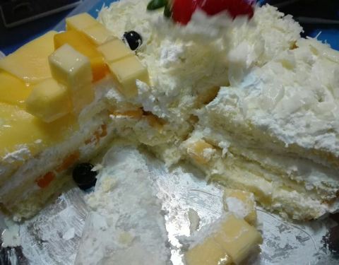 ...”的多一些,所以最终在这里订了一个“榴芒双拼”生日蛋糕,味道不错,真材实料,得到大家的一致好评