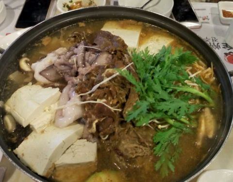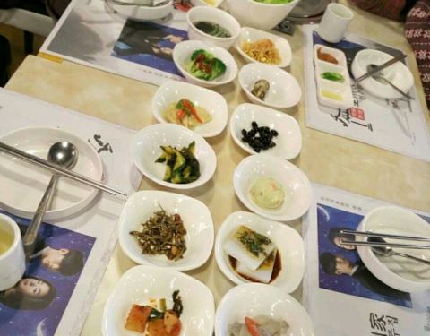 天气有点冻,点了一个八爪鱼火锅套餐和一份烤肉。 点好菜,服务员就开始上小菜了,可能我们人比较多(4个人)服务员一口气上了14个小菜给我们,感觉配个饭,搭这些小吃吃一吃就够一顿了。 不一会,八爪鱼锅端上桌子了,火锅的内容非常丰富哦,有八爪鱼、豆腐、豆芽、萝卜、牛肉,锅底是泡菜汤底,吃着有点辣辣的,挺暖身子的,套餐里还有韭菜饼,沾着他们配的酱吃,很不错。还有炒年糕,不太辣,不过因为光吃火锅已经很饱了,所以就没多吃炒年糕。 烤肉是我们让店家烤好了再端上来的,感觉一般般,就是一块肉而已,我个人是这么认为啦~~