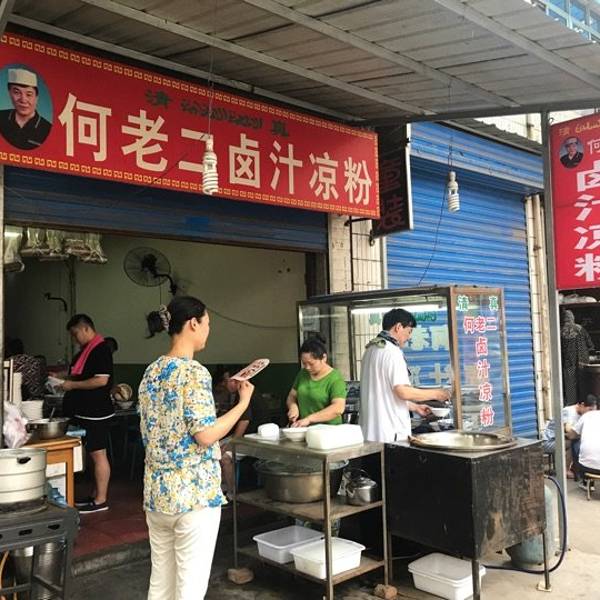 老板何老二形象清爽干净,笑容让我印象很深,记得第一次去时已经过了中午,他笑呵呵的告诉我可以第二天上午早点...很喜欢卤汁凉粉这道西安的黑暗料理,无论色泽还是各种看似不太搭界的食材都让我有兴趣一探究竟。