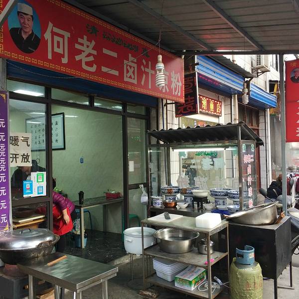 『??倒计时365天−Day88,何老二卤汁凉粉』。{??在西安的大街小巷吃吃吃}。秋冬季节已经不是吃凉粉的最佳时节。不过真的想知道卤汁和凉粉二者如何搭配。所以在冷风直吹的季节点了碗卤汁凉粉。首先会让你自己掰馍...『??倒计时365天−Day88,何老二卤汁凉粉』。{??在西安的大街小巷吃吃吃}。秋冬季节已经不是吃凉粉的最佳时节。不过真的想知道卤汁和凉粉二者如何搭配。所以在冷风直吹的季节点了碗卤汁凉粉。首先会让你自己掰馍,作为打底。最开始我以为跟羊肉泡馍一样掰的非常小。掰了一阵子,老板娘说“你这掰的太小了”。因此就掰的老大了,实际上大点确实美味些。因为他家用的是那种锅盔,不是白吉馍。掰的太碎了吃起来有种面坨了的样子。老板娘和老板都一再强调,要顺着边吃,不要搅拌,自然是要按照老板说的吃法吃啦。将凉粉顺着碗边扒到嘴里,芝麻酱的味道,油辣椒的味道,芥末的味道依次弥漫开来,味道还是挺特别的,底下的馍蘸上汤汁的味道,总体还是比较重口味的,最上面的皮蛋和鸡蛋也是点睛之笔,真是食材丰富,层次分明,对于第一次吃的我还是非常惊喜的。但是比起凉粉我还是更爱凉皮,因为凉粉是粉粉的口感,而凉皮是有嚼劲的,Q弹的。尽管说卤汁凉粉的评价挺两极分化的,开心的都夸上天,不开心的都说是黑暗料理,只是我感觉来一趟还是有必要试试的,起码我感觉还不错啦。以上个人网友攻略,口味不一,仅供参考。