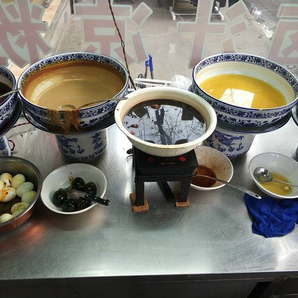 - 都是本地人来吃,都是加了膜和变蛋来吃,不知道凉粉里面加膜什么觉得,很神奇