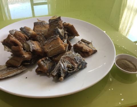 带鱼煎得还不错,塌饼甜的外脆里糯,好吃,送的水果里甘蔗好吃,应该是青皮甘蔗