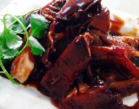 朱家角景区外围的一家馆子,平日都喜欢沿着河边找饭店,这次是被朋友拖着专程去吃饭的。她心心念念着红烧河鳗,发誓一定要一个人吃一整条,口感真的不错。只是我更开心的却是酱鸭,和我外婆做的一模一样。没点菜...