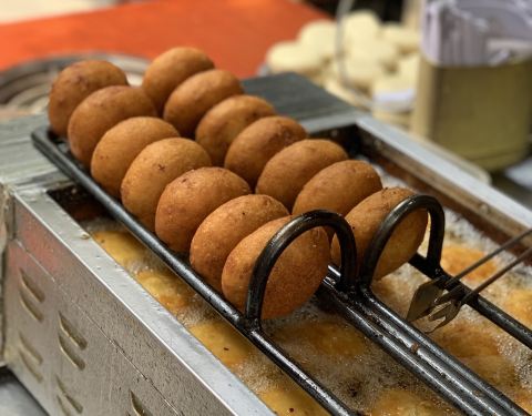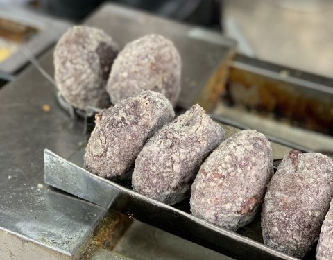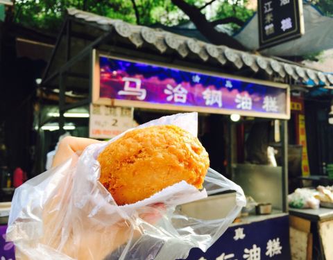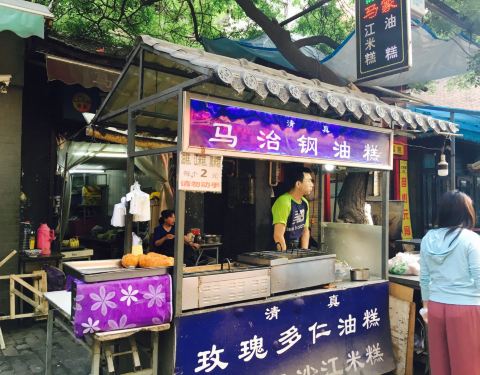导哥在排队定家小酥肉,小亚过来买花奶奶酸梅汤,回去的路上看见了这家,炸油糕的味道还有点香,关键是看成品感觉很脆很诱人,所以我就定住了。 犹豫了一下,买了一个油糕,其实我是想油糕和另外黑米糕一起买的,考虑到油炸的太油腻了,所以二选一选了油糕一个。 【油糕】2元 油糕一定要趁热吃,外壳金黄脆脆的,里面软糯的,中间的玫瑰果仁馅儿还是流动的,味道还行,还是有点甜。 慢慢吃,有点烫嘴哦! 卖油糕的大叔笑呵呵的看着很和善,态度也多热情的。2元确实是便宜哦。比旁边那些柿子饼实惠多了。