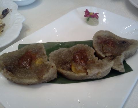 中秋节中午系到饮茶,本来想过渔民新村的~~~沿途见到车龙,果断奔潮府! 是大神的介绍而来的!就系南村口的十字位,非常好稳.... 虽然是节日,唔使等位,大把位~~~要个卤水鹅肉,蒸粉果,红谷米牛肉肠,潮阳鲎果,猪肠糯米和炒果条,一共125,唔算贵啊! 卤水鹅肉好鲜甜啊......又唔咸,28/例! 除牛肉肠,其他几样还可以,不过有D油腻咯~~特别是炒果条....好耐没吃猪肠糯米了,满足啊!潮阳鲎果,煎碱水粽?!只能说比较香口!粉果正...............皮做得好! 果个红谷米牛肉肠,真是好难吃啊,竟然严重粘口的....虽然D牛肉好有牛肉味......但D外皮唔店水啊~~~ 依然会继续来的!下次要试吓前边果间稻谷有机!