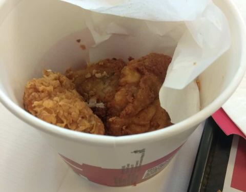点了一个39元的炸鸡桶,5块炸鸡,有2块藤椒脆皮鸡微辣很有味,原味鸡每个部位都选了一个,超赞。