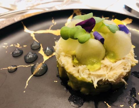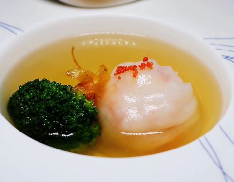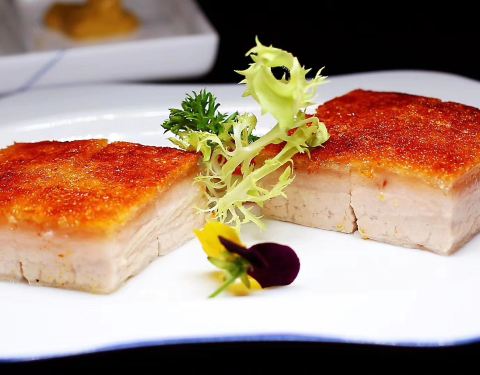 先说川菜一条石斑鱼做的沸腾鱼,色泽远胜于四川的大厨,说明选材和用料是真的很讲究,从味道上来说,太过于单调贫乏,麻辣味道极少,底味,也就是复合的香气基本是没有,我还是有点心疼这条石斑鱼。 湘菜剁椒鱼头,这道菜相对于上一道川菜来说,口味上略有起色,但是同样面临底味欠缺的感觉,最主要不满意的还是鱼头上的鱼鳞居然很多没处理完,靠近腮部的地方我基本就不吃了,只吃了鱼嘴。 回到粤菜上,这才是这家餐厅的主阵地,亚麻籽烧鸡我可以给它点一万个赞,招牌就是招牌,不愧这个称号,皮酥肉嫩,亚麻籽混合香浓的口感,去这家必吃。 一口方烧肉我又要提出批评,比起利苑差得不是一星半点,整个咸度太高,吃一粒就想喝水,利苑是分几层肉,这里只有肥瘦两层,还有点火候过大,焦煳的味道,作为粤菜发源地不应该这么大的失误。 番茄和蔬菜做的心肝宝贝、天籽兰花饺皇、安南子炖天山莲子中规中矩,无功无过。 很出名的小吃我点了三拼,里面包含了本店排名第一蓝莓雪媚娘,就是奶油里面加了蓝莓包裹在冰皮内,小吃对我来说还是比较普通。 两人包含服务费总价在1300左右,作为米其林,这家算是表现最不佳。