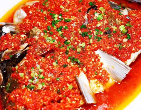 先说川菜一条石斑鱼做的沸腾鱼,色泽远胜于四川的大厨,说明选材和用料是真的很讲究,从味道上来说,太过于单调贫乏,麻辣味道极少,底味,也就是复合的香气基本是没有,我还是有点心疼这条石斑鱼。 湘菜剁椒鱼头...