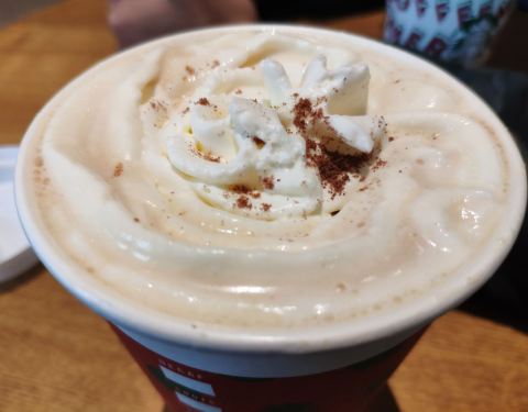 周五下午办完事路过恒大广场进去逛逛,看到二楼有家星巴克臻选店就顺便喝喝咖啡。 [环境]门口有排露天座位,店铺里面的面积很大,基本都坐满,生意很好。空调也很足,热得出汗。 [服务]态度还可以,不像有的星巴...周五下午办完事路过恒大广场进去逛逛,看到二楼有家星巴克臻选店就顺便喝喝咖啡。 [环境]门口有排露天座位,店铺里面的面积很大,基本都坐满,生意很好。空调也很足,热得出汗。 [服务]态度还可以,不像有的星巴克不准拍照,这家店员没有说什么,咖啡出品也快。 圣诞姜饼拿铁咖啡第一口喝到上面的奶油很好喝,下面的咖啡有点怪怪的。 总体是一家不错的星巴克,可以一直来。