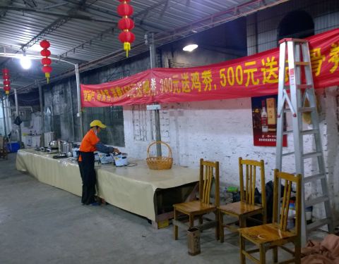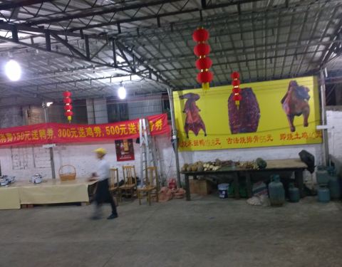 大厅是搭起的一个大棚,环境非常简陋。 烧鹅 是现点现烧的,皮脆肉嫩,分量很大