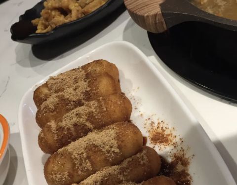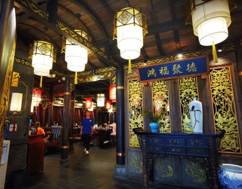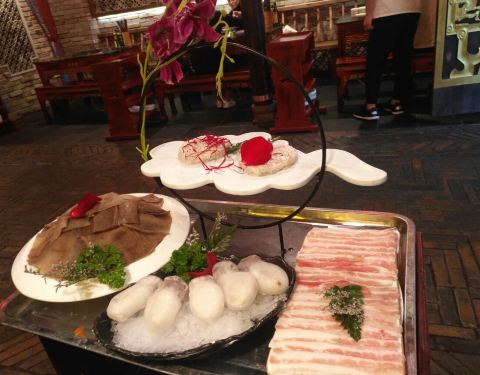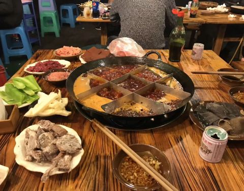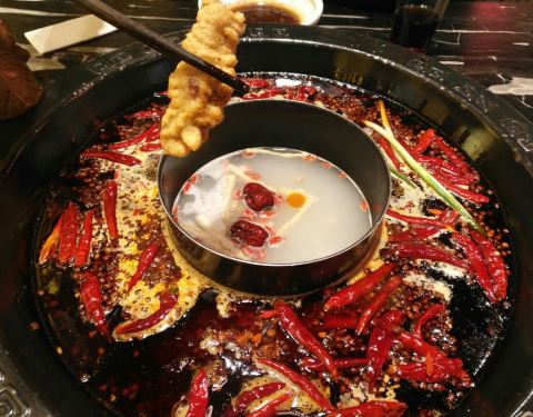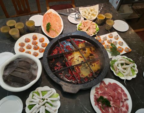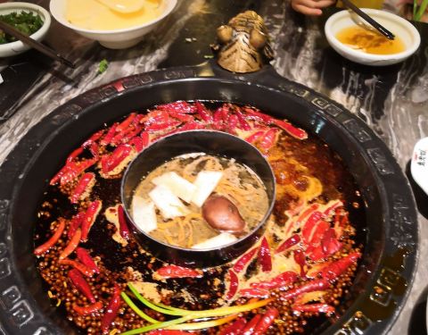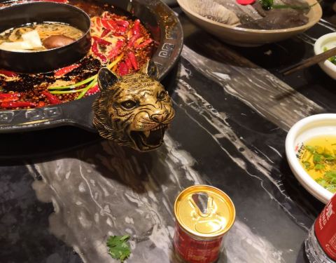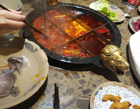 位于市中心的黄金地段,店铺宽敞,装修风格大气而古典,价格却又意外的平价。生意火爆,一定要做好排队的准备。锅具的龙头装饰很好看,招牌的麻辣锅底是正宗的四川辣,不太能吃辣的话推荐微辣。菜品新鲜分量也比较足,推荐嫩牛肉和一咪鸭肠,牛肉嫩气鸭肠够脆。酥肉的包装很有意思,但是味道稍显逊色。