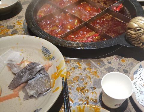 实话实说,鸭肠上来的那一刻,我惊了个呆,请原谅我的孤陋寡闻,入锅一会儿捞上来,脆脆的,好吃到没朋友。牛肉也很棒,鸡胗毛肚……不说了,细细品味四川火锅精髓去了!