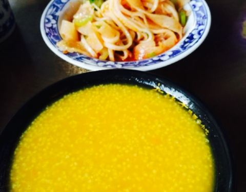 量特别足,油油的,之所以点了米皮,是因为没有擀面皮了,量也挺足的,就是盐放的有些多,吃到最后齁...
