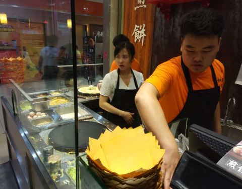 煎饼速度快,口感好,仔细一想自己好像是在啃汉堡,不错!
