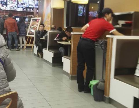环境: 快餐店的模式,卡坐,坐椅桌都有。她说她的比较干净。取餐自助用托盘。 服务: 服务生,受过专业训练。付费有多种模式。服务态度尚可。
