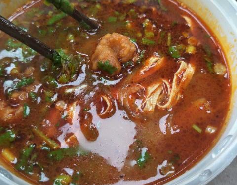 味道很好,只是凉皮比以前的更细了,菜是豆芽与菠菜,辣子油有芝麻。味道尚好,只是花生仁不够酥软