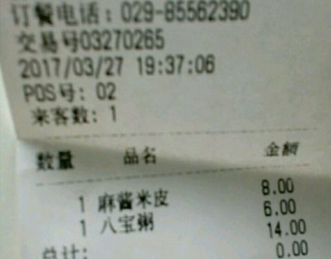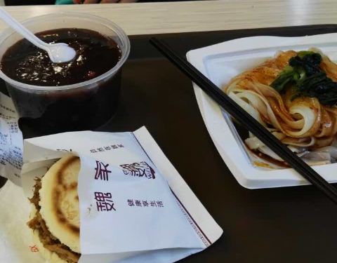 一,口味: 米皮:5元。味道很好,只是凉皮比以前的更细了,菜是豆芽与菠菜,辣子油有芝麻。量尚可。 麻酱凉皮:8元。凉皮依旧很细,只是稍微厚一些,麻酱已经是调和过的。另外有面筋,西兰花等。 八宝粥:6元。八宝粥已加糖,温热,有麦仁,黑米,花生仁,豆类等。味道尚好,只是花生仁不够酥软。 二,环境: 快餐店的模式,卡坐,坐椅桌都有。她说她的比较干净。取餐自助用托盘。 三,服务: 服务生,受过专业训练。付费有多种模式。服务态度尚可。