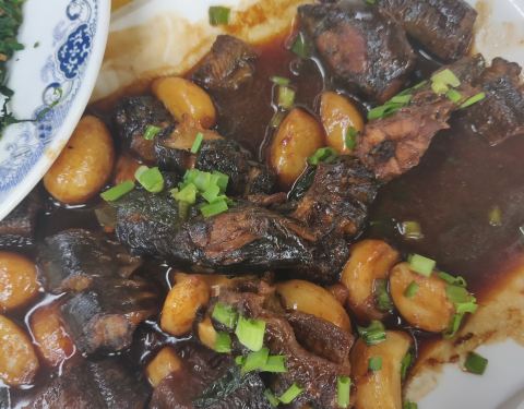 天马山镇的百姓农家乐,3月底的周末在天马山玩,出来到镇上吃饭,好像就这家餐厅大些,生意好得不得了,没人招呼我点菜,本来打算改去佘山那里吃午饭的。 问了一圈发现因为1点多了,有的餐厅厨师马上要下班了,保险点还是在这里吃算了。 20多分钟后还是回到百姓,也是稍微空些有人招呼了,兰笋烧肉、螺丝、小米糕、椰奶,1大1小一共75元,口味还行,就是…菜要等很久呐。