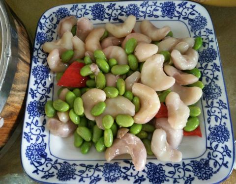 ...炒毛豆,海鲜面疙瘩,兰笋是佘山的特产,其它地方很难吃到,鲜嫩可口,一大盘笋被一抢而空,十分好吃