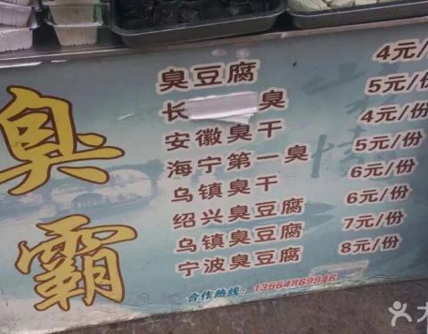 名字挺有趣的一家小店,星尚还来采访过。有八个品种的臭豆腐,海宁臭豆腐5元/6块,相对臭些,浸在汤卤里还是蛮好吃的。 - ...着凑了一下热闹,反正也没啥事做,要了一份臭豆腐还让老板给放了很多的汤,豆腐浸在汤里特别的有味道