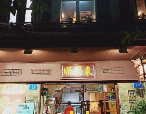 在五月花看完电影,朋友带路说去顺得来吃饭环境有点……凑合凑合吧,味道还是不错的。 |炒米粉^米粉细条细条的那种,吵得很好吃惹 |花甲王^花甲很肥美,用芥末香菜辣椒香油凉拌,开胃,很好吃 |上汤浸桑叶^皮蛋上汤桑叶,清淡好吃 煎藕饼^莲藕酿芋泥,再进行煎炸,除了热气点,味道还是不错的 清蒸罗非鱼 4斤1两,蒸的火候刚好,鲜嫩,赞!可以来二刷的店!