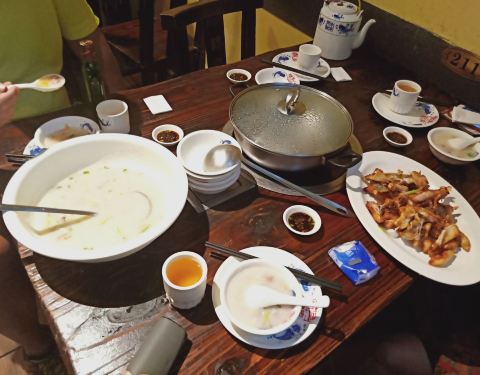 顺得来的一鱼多吃,就在五月花广场后头,没有本地人带是肯定找不到的,虽然有点偏僻,但是真真儿门庭若市,特别喜欢顺德做鱼的套路,真的太多太有创意了。从鱼皮,鱼肉,鱼肠再到鱼汤鱼粥,只要能做出来的,他们都能想到。除了鱼,他们的手撕鸡也做得很不错,桑叶汤喝起来特别清新,感冒了喝点粥对肠胃也好。很开心又能来广州吃吃喝喝,还认识了许多新朋友,期待有机会再见~